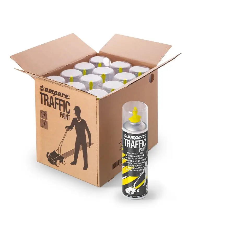Met deze Ampere Traffic Paint markeerverf – geel breng je eenvoudig strakke lijnen aan op vloeren van magazijnen, parkeerplaatsen, sporthallen of schoolpleinen. De Ampere Traffic markeerverf verf hecht uitstekend op harde ondergronden zoals beton en asfalt en is bestand tegen intensief verkeer en weersinvloeden. Je gebruikt deze verf in combinatie met de Ampere Perfekt Striper lijnentrekker wanneer je nauwkeurig lijnen wilt trekken op diverse ondergronden. Je kunt de markeerverf echter ook zonder lijnentrekker gebruiken door de handige spuitkop die aan de bovenkant van de bus zit.