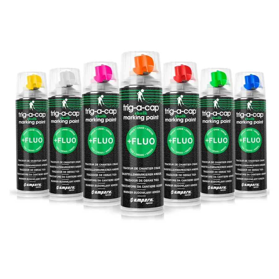 Met de Ampere trig-a-cap chalk krijtspray kun je gemakkelijk tijdelijke markeringen aanbrengen. Dankzij de innovatieve CONFORT TRIGGER® spraykop breng je strakke lijnen aan zonder vlekken of verspilling. De krijtspray is geschikt voor uiteenlopende toepassingen zoals sportevenementen, rommelmarkten, tentoonstellingen en landschapsprojecten. Je gebruikt de bussen direct met de hand of combineert ze met een trig-a-cap markeerstok voor comfortabel werken zonder bukken.