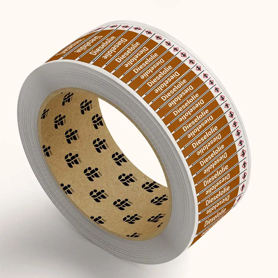 De dieselolie leidingmarkering stickers – op rol kun je gebruiken om aan te geven dat in deze leiding een soort ontvlambare vloeistof stroomt. Met deze leidingmarkering geef je aan dat het gaat om dieselolie. De dieselolie leidingmarkering sticker op rol is verkrijgbaar in twee verschillende formaten (zie specificaties hieronder) en is gemaakt van zelfklevende folie met laminaatlaag. Hierdoor kun je altijd een sticker kiezen die bij jouw situatie past. De dieselolie leidingmarkering sticker op rol heeft een rechthoekige vorm en is bruin met wit en zwart van kleur.
