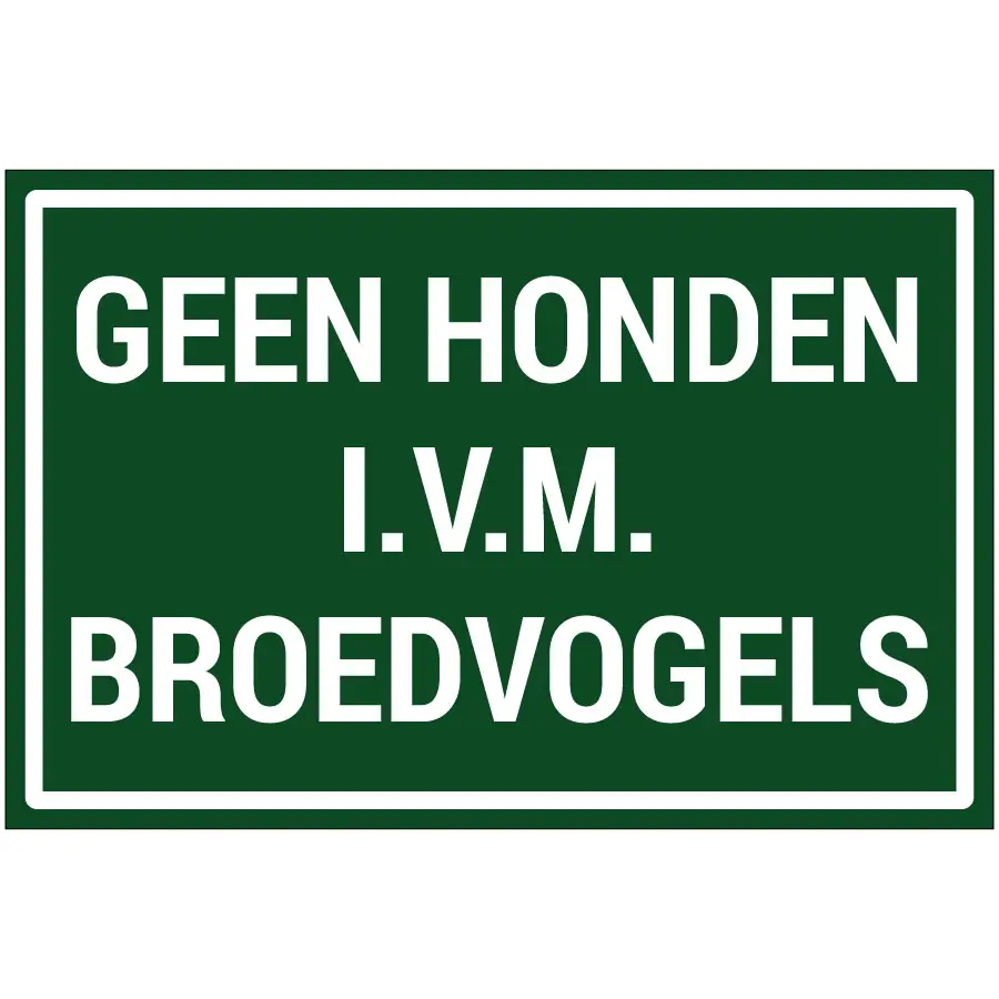 Het geen honden ivm broedvogels bord kun je gebruiken om te laten zien dat je hier niet mag komen met een hond vanwege broedvogels. Hiermee kun je mensen gemakkelijk informeren. Dit bord is verkrijgbaar in verschillende formaten en materialen. Hierdoor kun je altijd een bord kiezen die bij jouw situatie past. Het geen honden ivm broedvogels bord heeft een rechthoekige vorm en is donkergroen met wit van kleur.