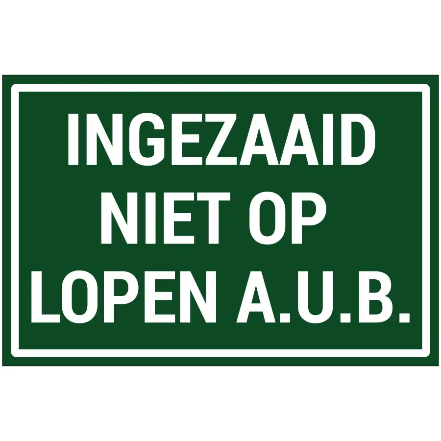 De ingezaaid niet op lopen aub sticker kun je gebruiken om te laten zien dat je hier niet op mag lopen. Hiermee kun je mensen gemakkelijk informeren. De ingezaaid niet op lopen aub sticker is verkrijgbaar in verschillende formaten en is gemaakt van zelfklevende folie. Hierdoor kun je altijd een sticker kiezen die bij jouw situatie past. De ingezaaid niet op lopen aub sticker heeft een rechthoekige vorm en is donkergroen met wit van kleur.