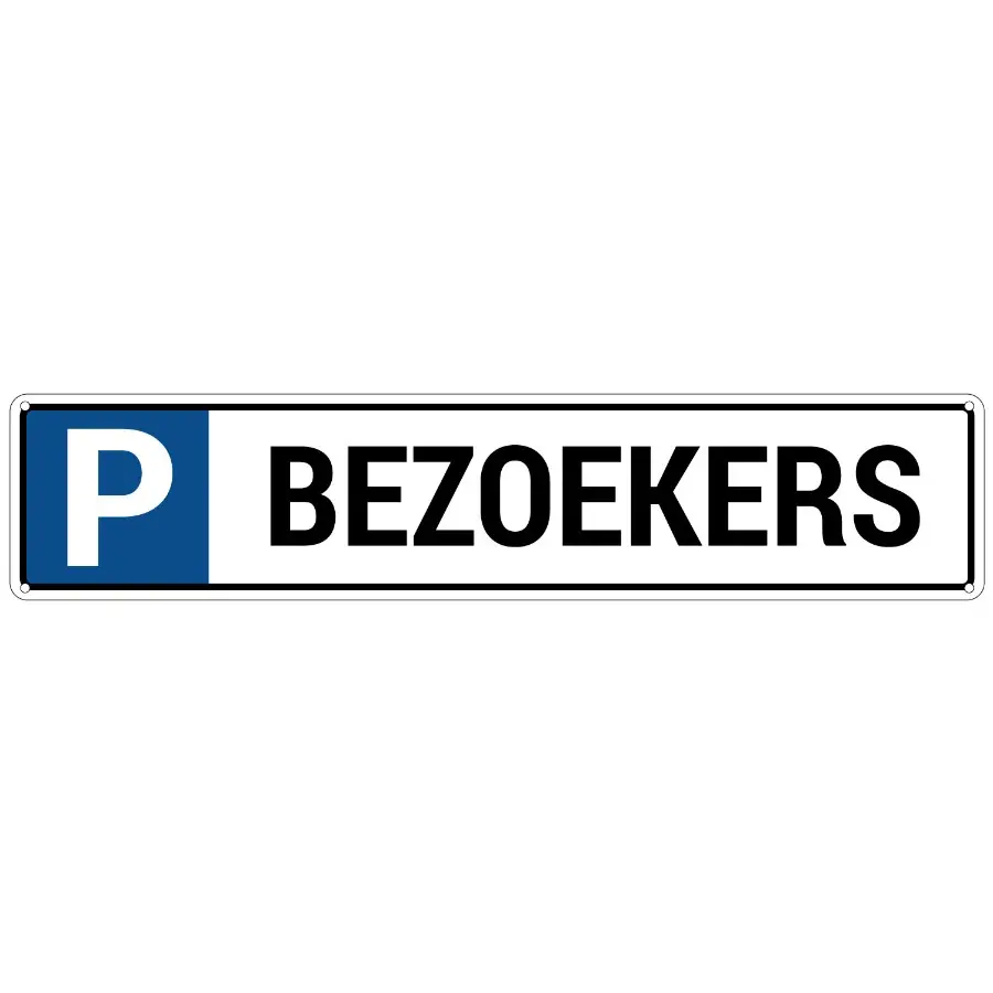 Het Parkeerbord bezoekers – 52 x 11 cm – met 4 boorgaten is de perfecte oplossing wanneer je duidelijk wilt aangeven dat deze parkeerplek gereserveerd is voor bezoekers. Dit bord ontvang je in het officiële formaat van 52 x 11 cm, waardoor het voldoet aan de reguliere afmetingen van dit type borden. Daarnaast heeft het bord een stijlvol ontwerp door de wit met blauwe en zwarte kleur. Hierdoor past het goed in elke omgeving.
