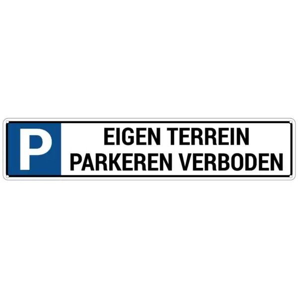 Het Parkeerbord eigen terrein parkeren verboden – 52 x 11 cm – met 4 boorgaten is de perfecte oplossing wanneer je duidelijk wilt aangeven dat dit een eigen terrein is waar parkeren verboden is. Dit bord ontvang je in het officiële formaat van 52 x 11 cm, waardoor het voldoet aan de reguliere afmetingen van dit type borden. Daarnaast heeft het bord een stijlvol ontwerp door de wit met blauwe en zwarte kleur. Hierdoor past het goed in elke omgeving.