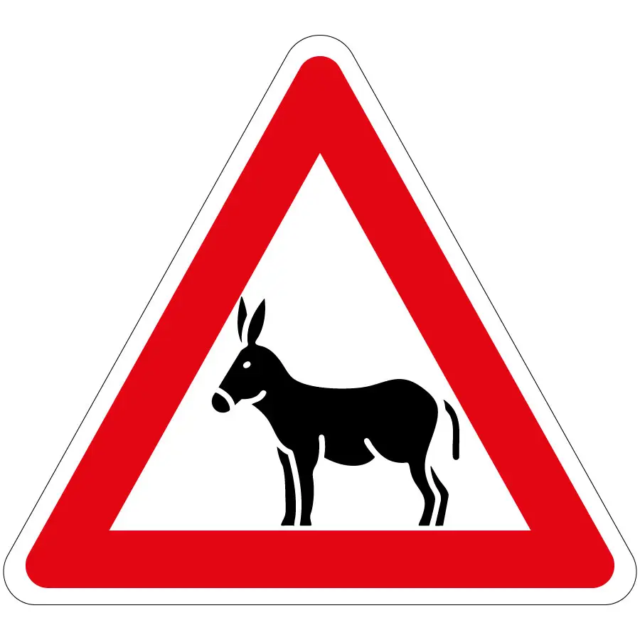 Het pictogram pas op overstekende ezels geeft aan dat je hier moet oppassen voor ezels die kunnen oversteken. Dit pictogram geeft dit duidelijk aan met behulp van het symbool van een ezel met driehoekige rode rand. Hiermee voorkom je mogelijk gevaarlijke of vervelende situaties. Verder is dit pas op overstekende ezels pictogram gemaakt volgens de officiële standaarden die horen bij deze pictogrammen.