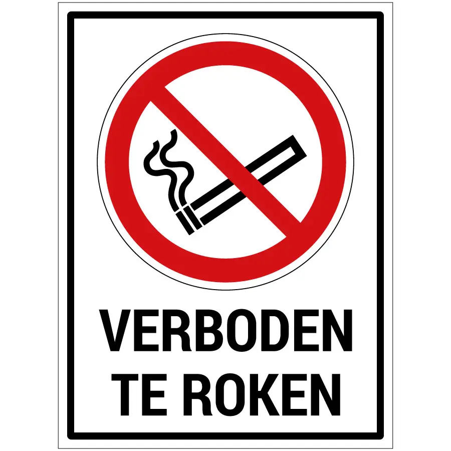 Het pictogram verboden te roken met tekst geeft aan dat je hier niet mag roken. Dit pictogram geeft dit duidelijk aan met behulp van het symbool van een sigaret en rode schuine streep en de tekst verboden te roken op een witte achtergrond. Hiermee voorkom je mogelijk gevaarlijke situaties. Het verbodspictogram voor verboden te roken is gemaakt conform recente normen voor veiligheidspictogrammen. Door dit pictogram te gebruiken voldoe je aan de meest recente normeringen en zorg je ervoor dat voor iedereen duidelijk is wat met het symbool bedoeld wordt.
